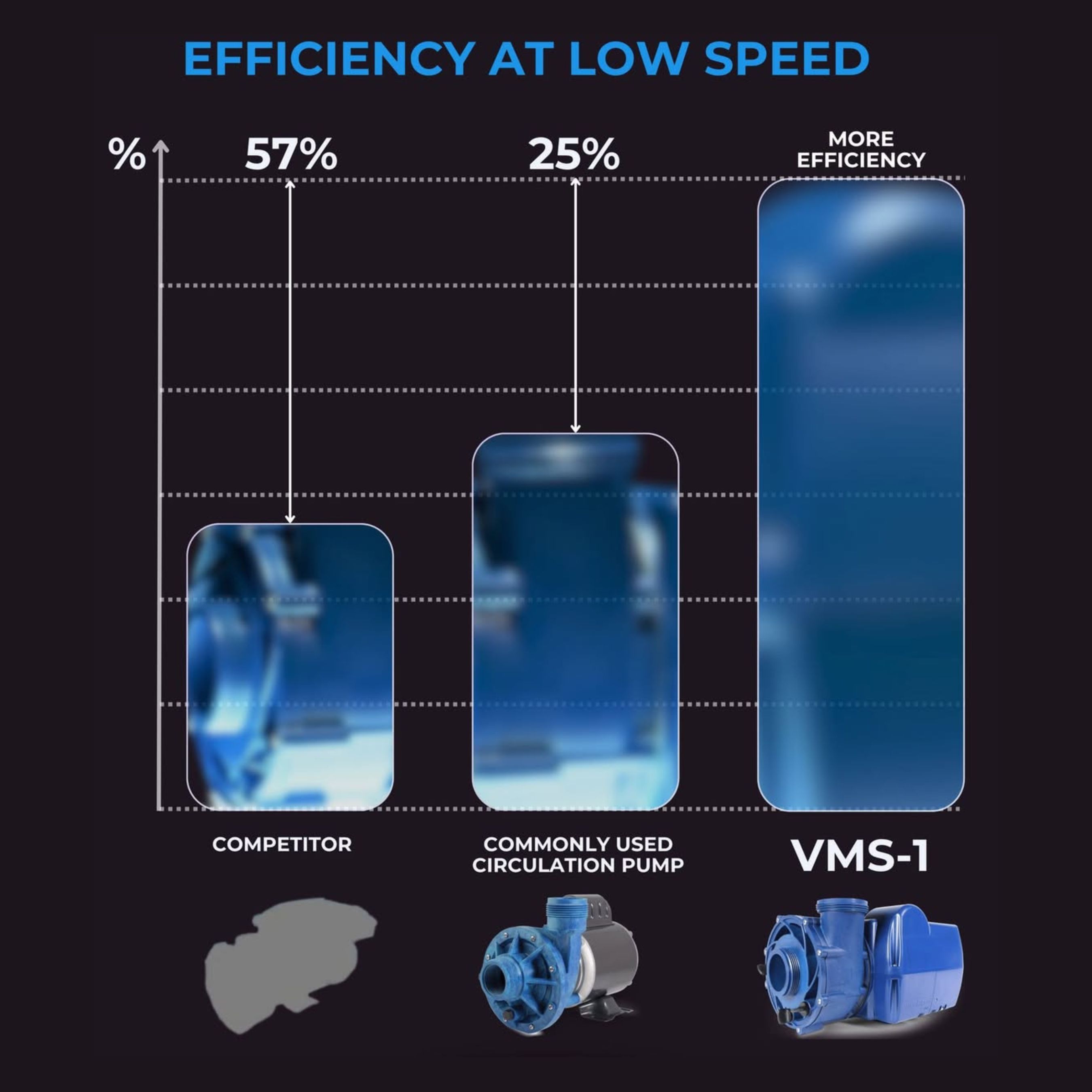 The VMS-1 is more than just quiet; it is engineered for peak energy efficiency. Benchmarking data reveals that this pump operates approximately 10% more efficiently than its competitors at high-speed settings, while maintaining superior performance at low speeds. This efficiency gap is most pronounced during low-speed operation, where the VMS-1 consistently outperforms both traditional competitor models and dedicated circulation pumps like the "Circ-Master." This translates directly into lower energy costs, reduced heat accumulation, and an extended lifespan for all system components.